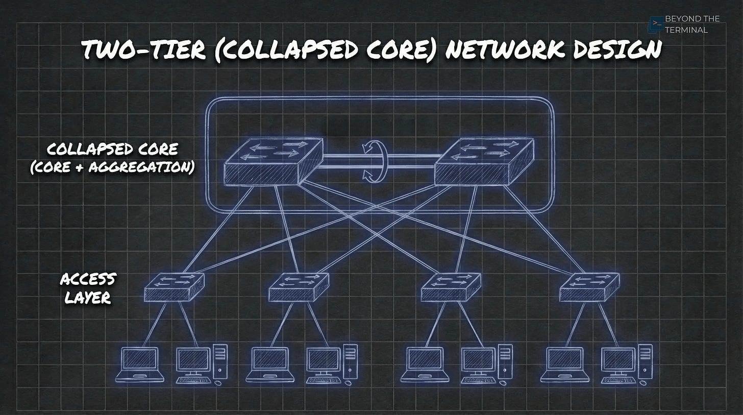 If you’re working in a smaller office or a site with just a handful of racks, the Two-Tier design is simple, effective, and keeps the management overhead down.